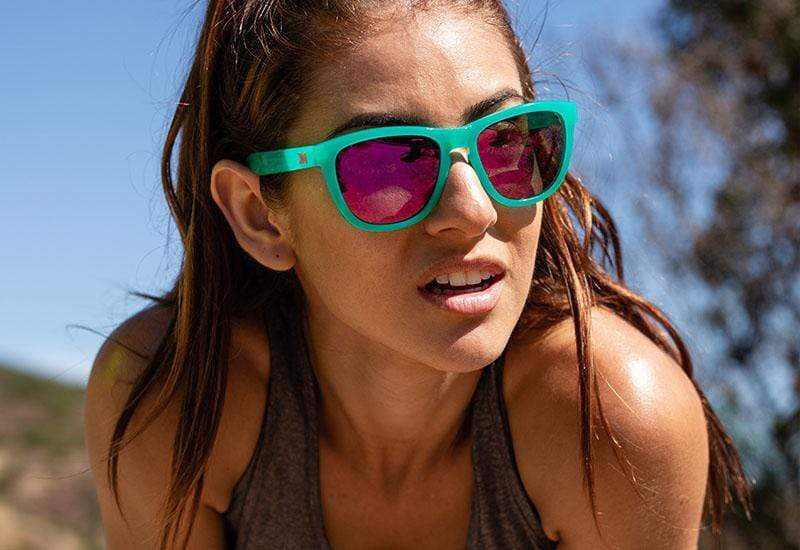 If you need a pair of affordable and stylish sunglasses that are perfect for your next run (or any other outdoor adventure), our Sport Collection will help you go that extra mile. When you want to stop traffic and make other runners jealous of your shades, you know which Premiums Sport sunglasses to choose. Aquamarine frames and fuchsia lenses add a splash of neon goodness to your outfit, while embedded aquamarine nose pads ensure your shades don’t slip and keep their grip. Knockaround Premiums offer a universally flattering fit which make them perfectly suited to a variety of face shapes.