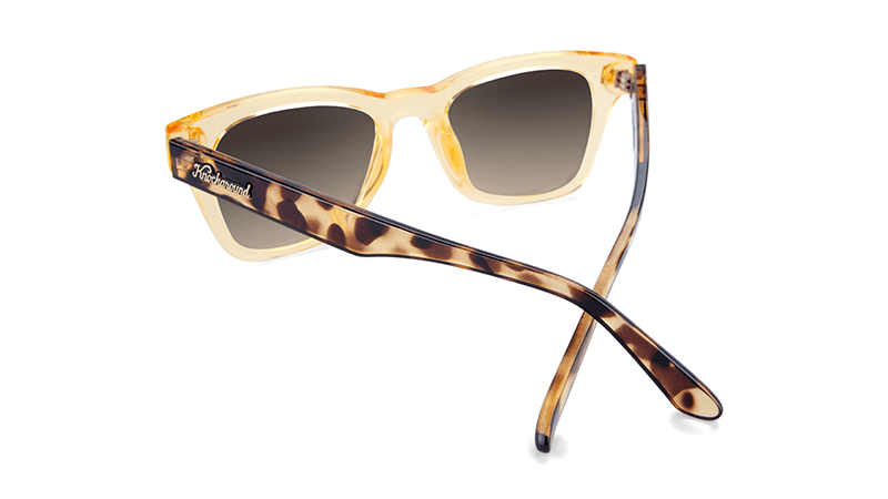 Approachable yet fashion-forward, the Seventy Nines offer a perfectly laidback blend of vintage styling and contemporary cool. This pair combines translucent peach frames with tortoise shell arms, finished off with our classic amber gradient lenses and gold hardware. Durable 5-barrel hinges assure that you’ll wear these sunglasses season after season, while the low-profile silhouette is especially flattering for small to medium-sized faces.