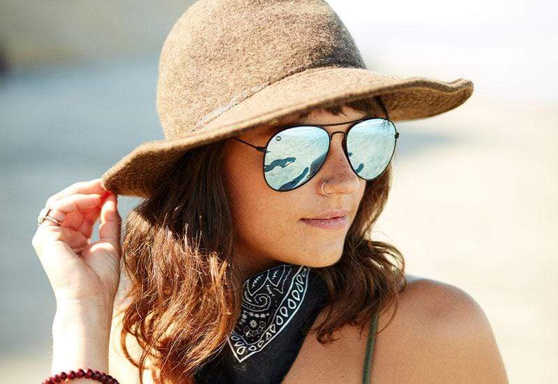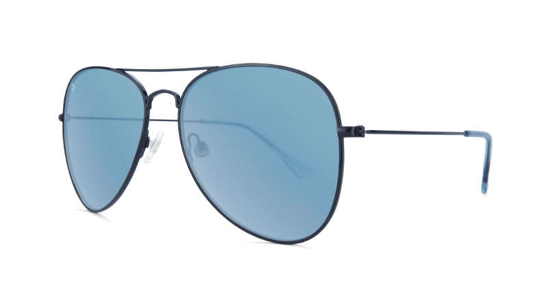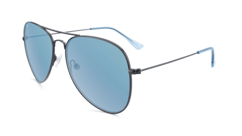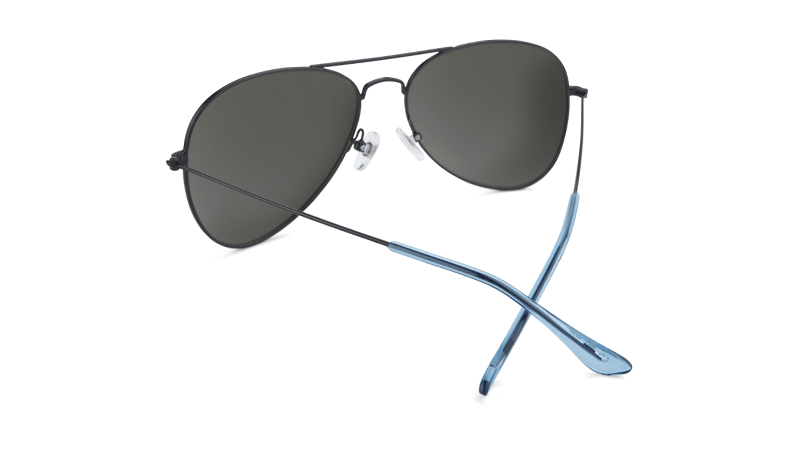 These aviator sunglasses are an update to the classic, teardrop-shaped frames made famous by pilots during WWII. Knockaround Mile Highs feature slim wire construction with rubber ear pads at the arm ends for all-day comfort, whether you’re soaring at 30,000 feet or planted firmly on the ground. Here, we’ve paired sleek, black metal frames with sky blue lenses and sky blue detailing; the polarized lenses also offer UV400 protection to help protect your eyes on even the sunniest days.