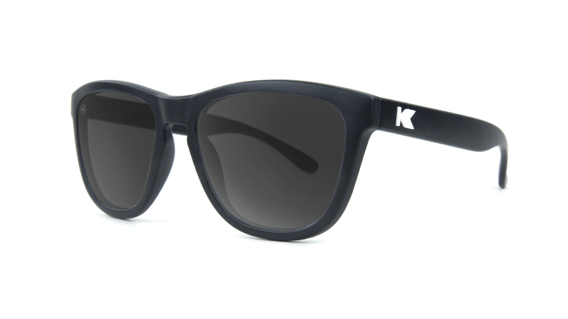 Our black and smoke kids sunglasses are a mini model of the Knockaround Premiums frame style, with the same level of style and quality. Perfect for looking as cool as Mom and Dad, these classic black frames provide a comfortable fit for most kids ages 1 to 5 years old. Smoke colored lenses provide full UV400 sun protection for those Sunday afternoon family trips to the beach. Made just for your little one(s), these form-fitting black frames are snug so they won’t fly off during rides at the amusement park. Every pair comes with a protective, soft pouch…because we know from experience that 3-year olds are basically tiny tornadoes...in sunglasses.