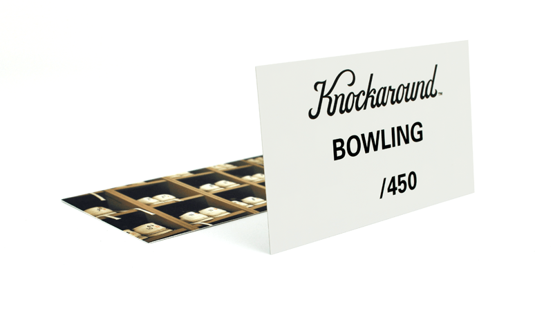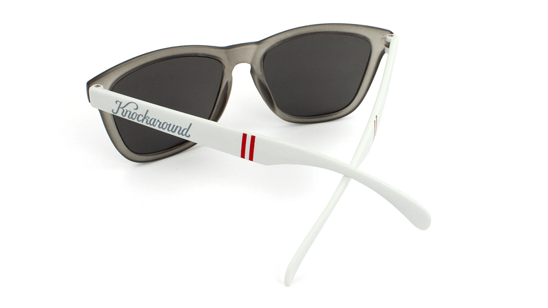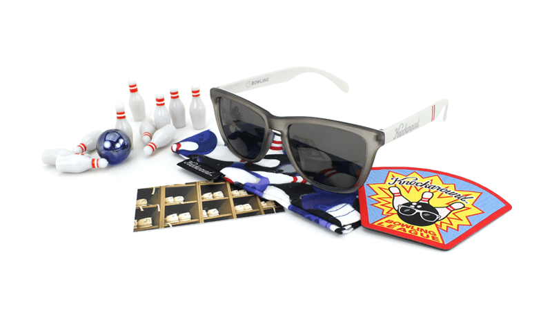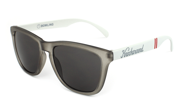 If you're reading this, chances are you already have a pair of Knockarounds… but it's time to pick up a spare. Introducing Limited Edition Bowling Premiums! You'll be the talk of the alley wearing a pair of these, which feature frosted grey fronts, smoke lenses, and screenprinted matte white arms. The design is simple and classic, just like the game itself: just roll the ball down the lane and knock over as many pins as you can.