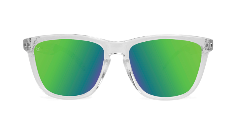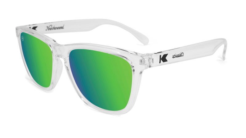 Looking for a pair of unique sunglasses that add a little pop of cool to your overall look? Meet our Knockaround Classics with clear frames and green moonshine lenses. These babies double-down on cool and are perfect to sport with any style. Every pair is equipped with the staple Classics silhouette but gets an original twist thanks to this awesome colorway. Plus, if you’re looking for a pair of clear polarized glasses that don’t skimp on style and sensibility, you can upgrade your Classics to polarized lenses for just $5 more.
