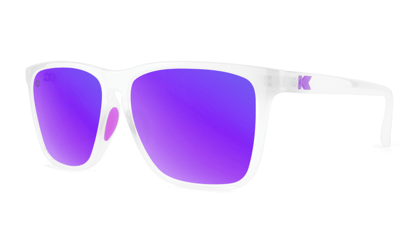 Clean cut, rectangular purple lenses take center stage on these Fast Lanes Sport shades that incorporate matching purple embedded rubber nose pads in the frame. With the addition of nose pads, you can take these shades on your next run or any other outdoor adventure without worrying about slipping, sliding, or bouncing. In addition to being polarized to reduce glare, our lenses are FDA approved impact resistant.