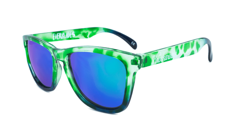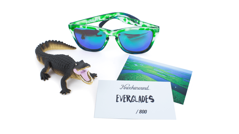 Pack your earplugs because we’re taking you on an airboat trip through the Everglades! Introducing the Limited Edition Everglades Premiums. Featuring a green wetlands pattern, coastal blue accents, and gator-green moonshine lenses, these glasses will have the egrets staring. Each pair comes with a pet alligator and hand-numbered edition card.