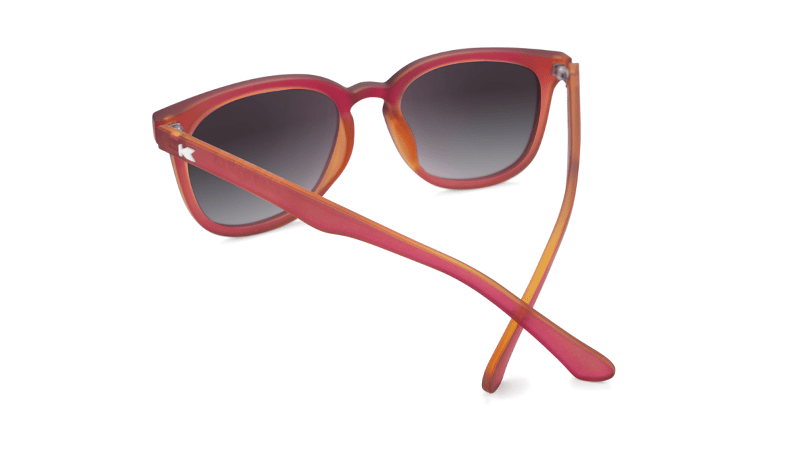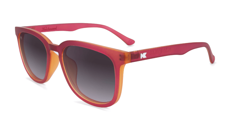A matte finish elevates this pair of Knockaround Paso Robles with frosted garnet frames and classic smoke gradient lenses. These unisex sunglasses are designed with sculpted frames and rounded corners, making them the perfect complement for small and medium-sized faces. They also feature UV400 protection and impact resistant lenses for long-lasting durability.