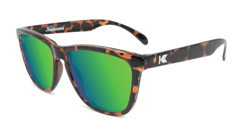 Animal print never looked this good! These beach-inspired tortoise shell sunglasses in our Classics frame style hold vibrant green moonshine lenses that are impact resistant and offer full UV400 protection. A design made famous in the early 1900’s, our original Classics frame features a semi-arched top and rounded bottom that flatters every face shape. Knockaround is written in a gold script on the frames to let the world know you have excellent taste. Polarized option available.