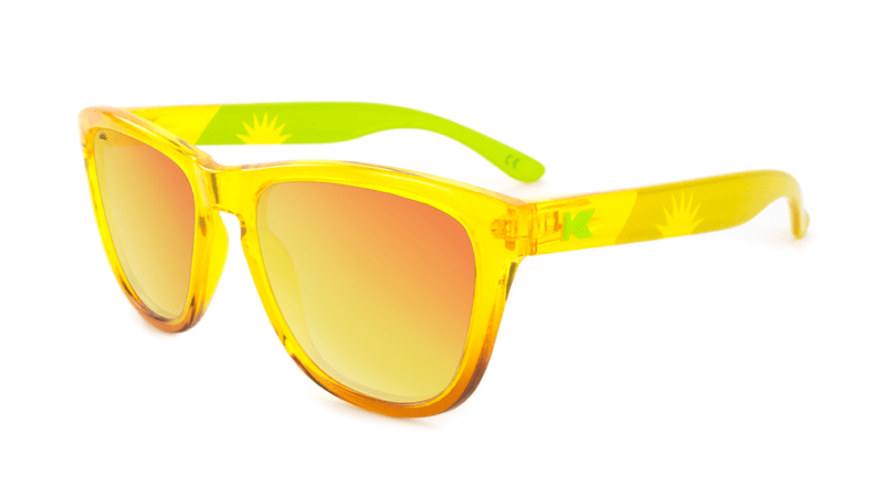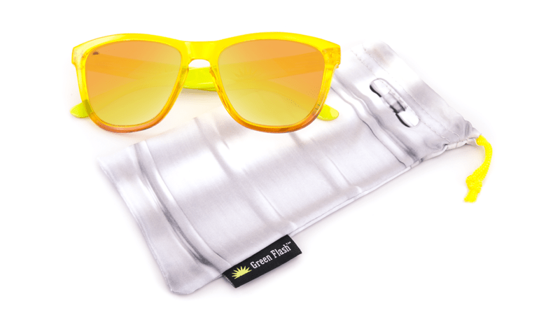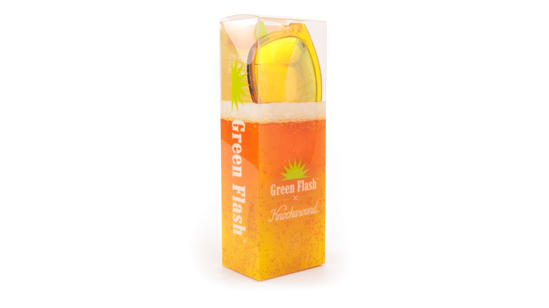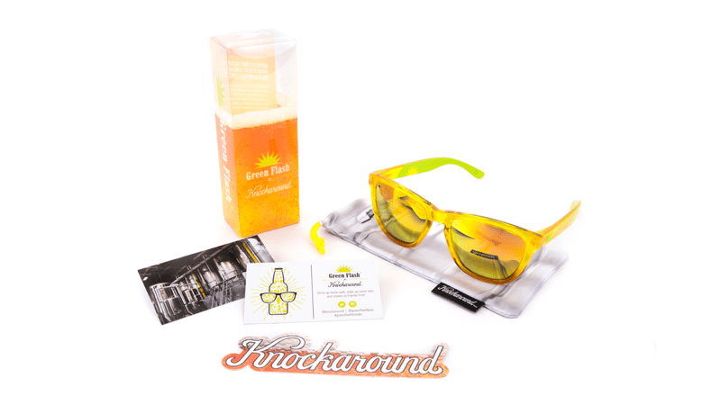 The Green Flash Premiums feature golden yellow frames that fade to amber with reflective, polarized sunset lenses. Each pair comes packed with a keg shell-print microfiber pouch, custom Knockaround beer sticker, and collector’s card, inside a custom box. Limited quantities are available. For more project information, click here.