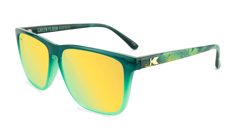 Designed on one of our most popular frame styles, the Fast Lanes feature clean-cut, rectangular lenses, and provide full UV400 sun protection. Every pair comes with a co-branded Green Flash x Knockaround protective, sunset palm pouch.