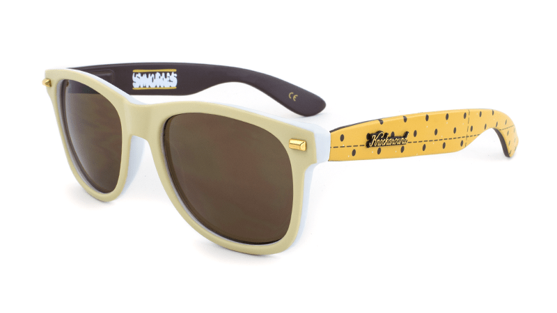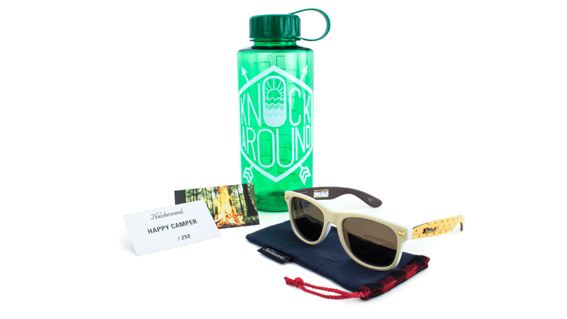Our tent is pitched, the campfire is roaring, and the s’mores are prepped. We’ve ventured deep into the woods to introduce the Limited Edition Happy Camper Fort Knocks. These glasses feature toasted marshmallow fronts, graham cracker arms, and chocolate amber lenses. Each pair comes with a sleeping bag carrying case, modern-day Knockaround canteen, and a hand-numbered edition card.