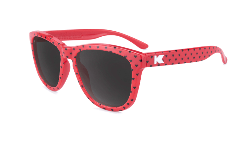 It’ll be love at first sight when your little ones try on this pair of Kids Premiums. Playful lovebug frames decked out in tiny hearts are matched with classic black smoke lenses and finished with our white K logos. Designed to fit children ages 1 to 5, these sunglasses are made with FDA approved impact resistant lenses, UV400 protection, and a form fitting design that keeps them in place while your kiddos play.