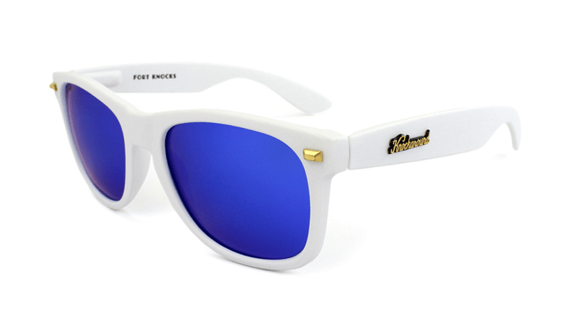 Our Knockaround Fort Knocks (version 1.0) embody the classic design, strength, and color that become synonymous with Knockaround sunglasses. Inspired by the United States Bullion Depository in Fort Knox, Kentucky, the injection-molded frames feature gold bar and gold Knockaround logo detailing with hidden spring hinges. These high quality, form-fitting sunglasses make for a comfortable and durable fit.