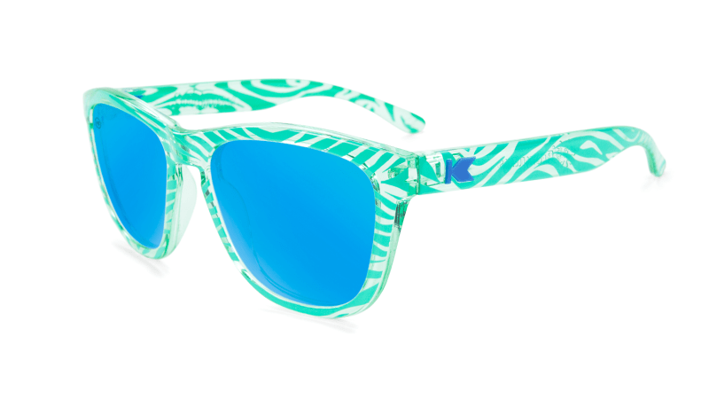 Let your little ones take a walk on the wild side with this playful pair of Knockaround Kids Premiums. Modeled after our popular Premiums frame style, these durable sunglasses are designed to fit kids ages 1 to 5 years old. Kids Premiums are form fitting, so they won’t fall off no matter how hard your kiddos play. This pair features mint zebra frames and aqua lenses with full UV400 sun protection.