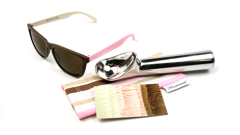 I love variety. It's tough to stick with just one flavor of anything, and that's what Knockaround is all about. Well, this month's Limited Edition is our whole philosophy in a tasty, tricolor nutshell: I give you Neapolitan Premiums. Inspired by the colors of the three-striped ice cream we all know and love, each pair comes with a matching pouch, a numbered edition card, and a high-quality silver ice cream scoop, so you can dish some out yourself.