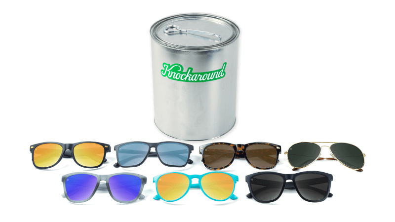 These sunglasses are Knockaround essentials that everyone should have in their collection. Each of these colors will look good on just about anybody. Included in this bundle are seven best-selling pairs of polarized sunglasses: two Premiums, two Fort Knocks, and one pair of Fast Lanes, Mai Tais, and Mile Highs. All seven pairs are packed and shipped in a Knockaround paint bucket and conveniently come with an opener. A $180 value for only $135.