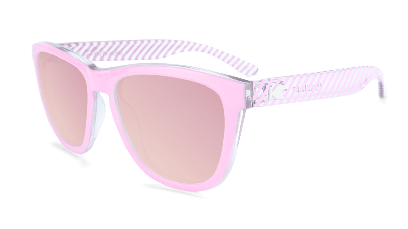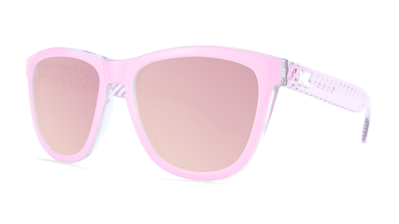 Thinking pink? We certainly were when we designed these colorful sunglasses with bright pink Park Ave frames and polarized rose mirrored lenses. Knockaround Premiums offer an updated take on our Classics frame style, with a slightly wider and more accommodating fit that looks great on both men and women. This pair is finished with candy striped arms featuring our white K logos. Want a matching pair for your little one(s)? Scoop up a pair of the Park Ave Kids Premiums.