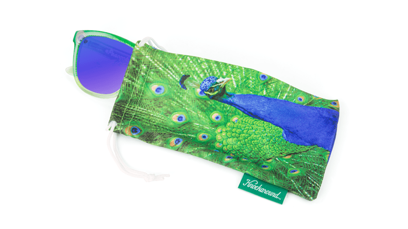 Every pair comes with an extravagant, custom-print pouch to store your sunglasses...until it's time to pull them out, spread that train of feathers, and impress all your fellow peafowl.