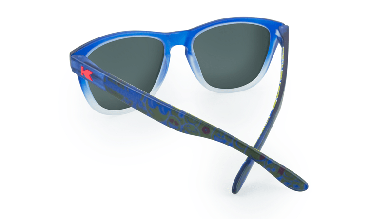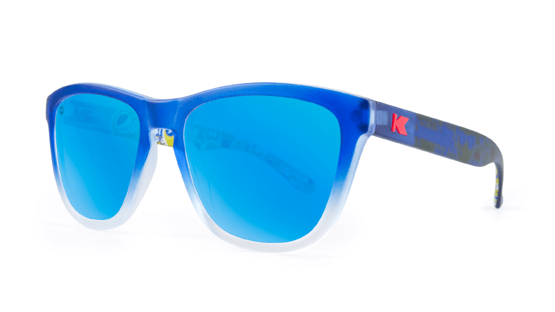 The Pepsi Premiums feature frosted deep blue frames that gradate to ice cold bottoms on the front. The inside arms feature a PepsiMoji print with matte Red K logos on the outside. Polarized effervescent blue lenses with a PepsiMoji sunglasses lens etch rounds out these electric Summer shades. Designed on Knockaround’s best-selling frame, these sunglasses are form-fitting, universally flattering, and provide full UV400 sun protection.