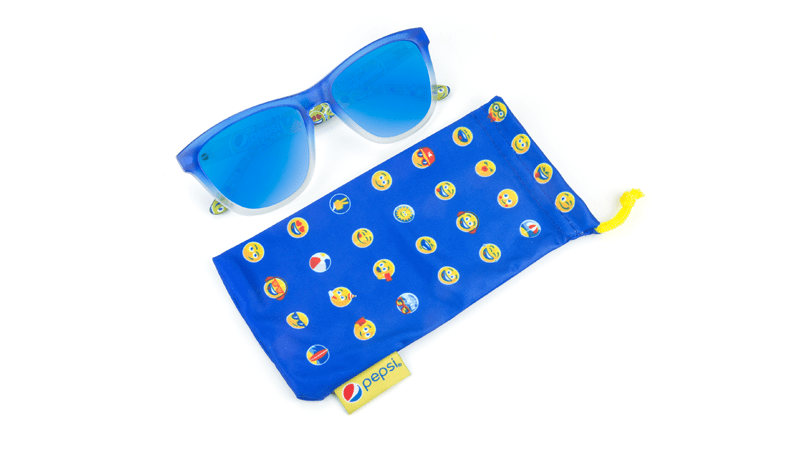Each set comes with an amazing pair of sunglasses packed in a PepsiMoji box, a microfiber protective pouch, a custom PepsiMoji x Knockaround sticker, and collector’s card.