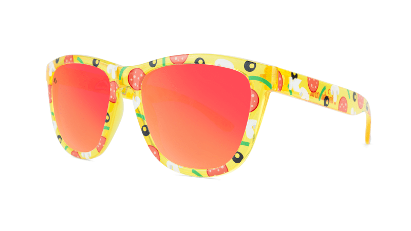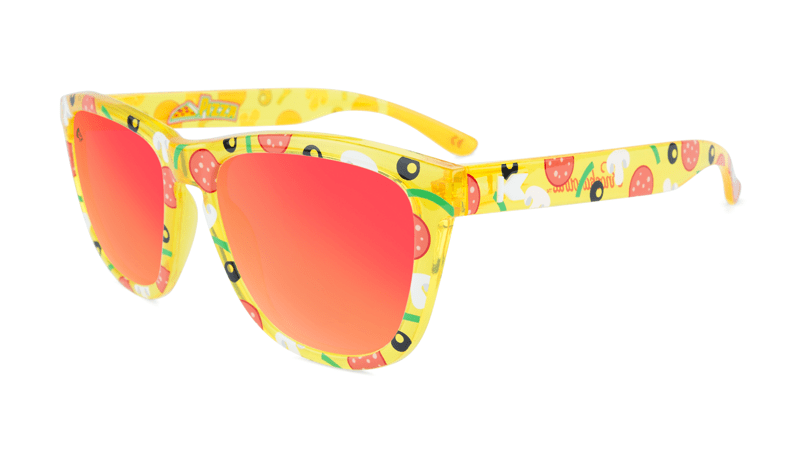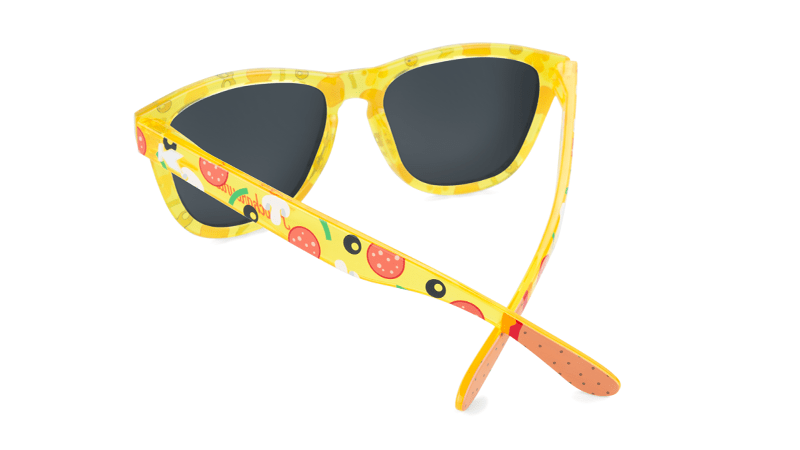The Pizza Premiums feature a translucent golden crust frame tossed with your favorite fresh ingredients, we’re talkin’ pepperoni, mushrooms, olives, and bell peppers! These real-life, pie in the sky shades are topped off with crispy white K logos, and polarized oven-hot red lenses with a cheesy slice lens etch.